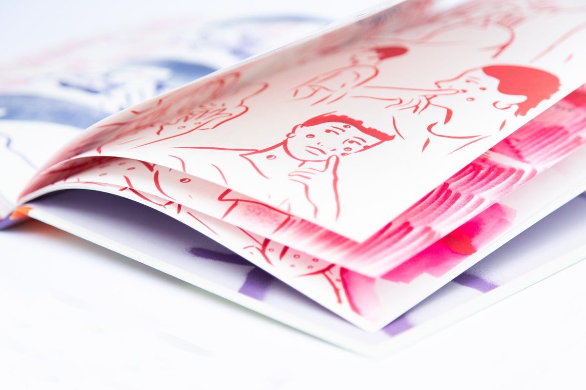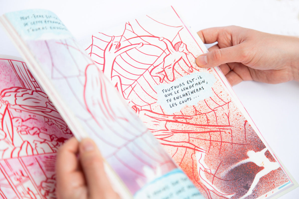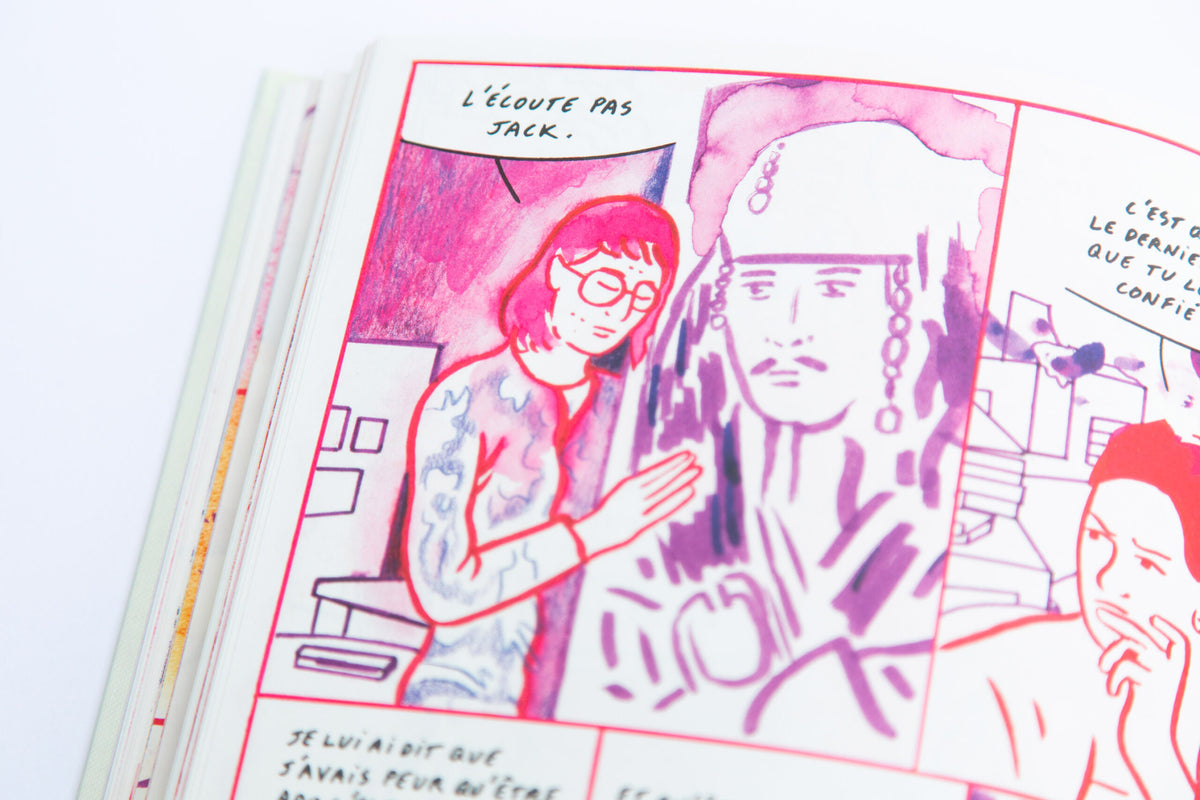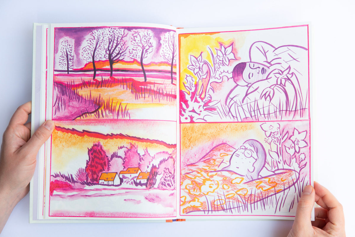 The artist masters her technique with a flexible and spontaneous line that reflects the psychology of her young characters. Using watercolor markers, she draws a clear line without any tricks. The colors are bright and vibrant, and airbrush textures punctuate the story, reminding us that the author's breath is never far away.