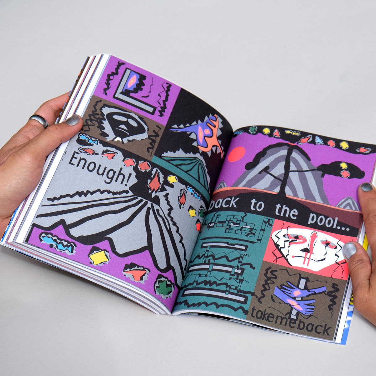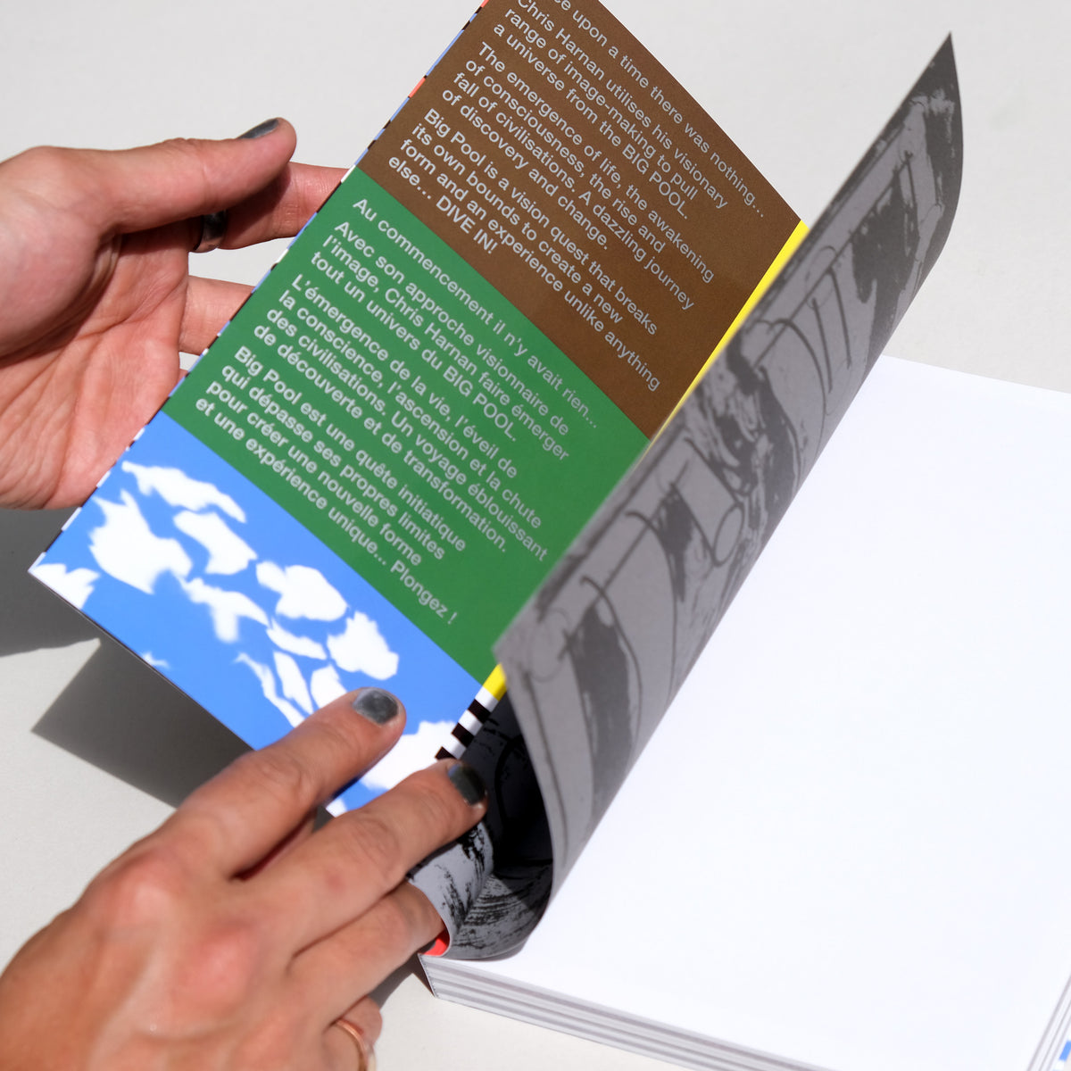 Big Pool, by Chris Harnan, is a teeming object — explosive, like the great bangs that give birth to universes, asserting without compromise their own physics, rules, and chaos. Each constellation of images is held together by an alchemy that knows no limits — neither in the freedom of their composition, nor in the ruptures that separate them.