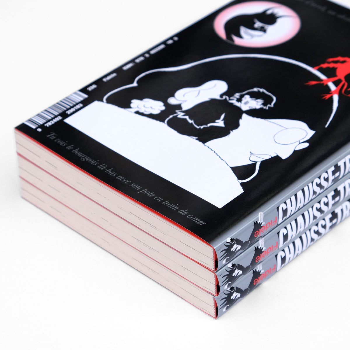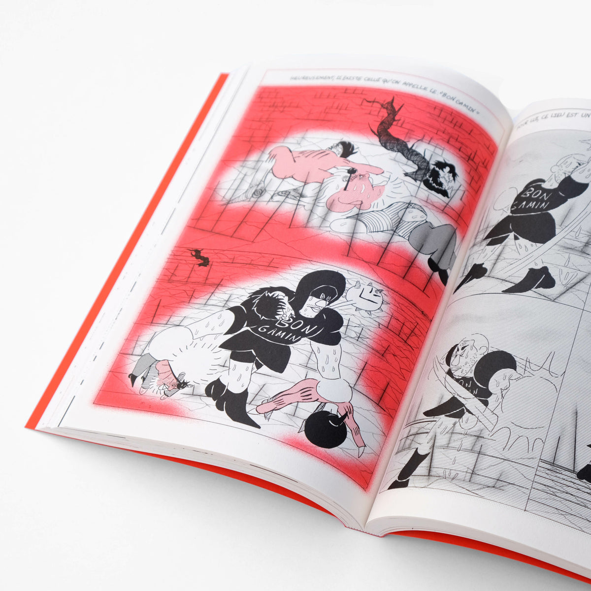Henri Crabières disguises what resembles a painful and violent abstract and chaotic introspection as a farce. Self-represented in his main character, he endures the gratuitous atrocities of two thugs determined to enrich themselves through his kidnapping. "Chausse-trape" is a comic book created as part of his diploma from the Paris Decorative Arts, for which he lays down his graphic foundations and narrative obsessions.