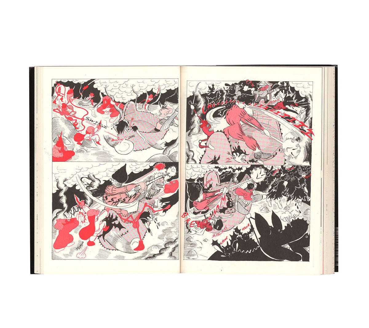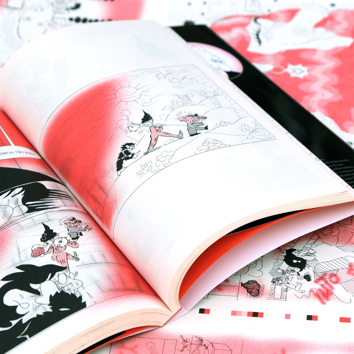 This red book is printed in two-color offset on soft, raw paper, wrapped in a black and red chrome jacket, glazed.