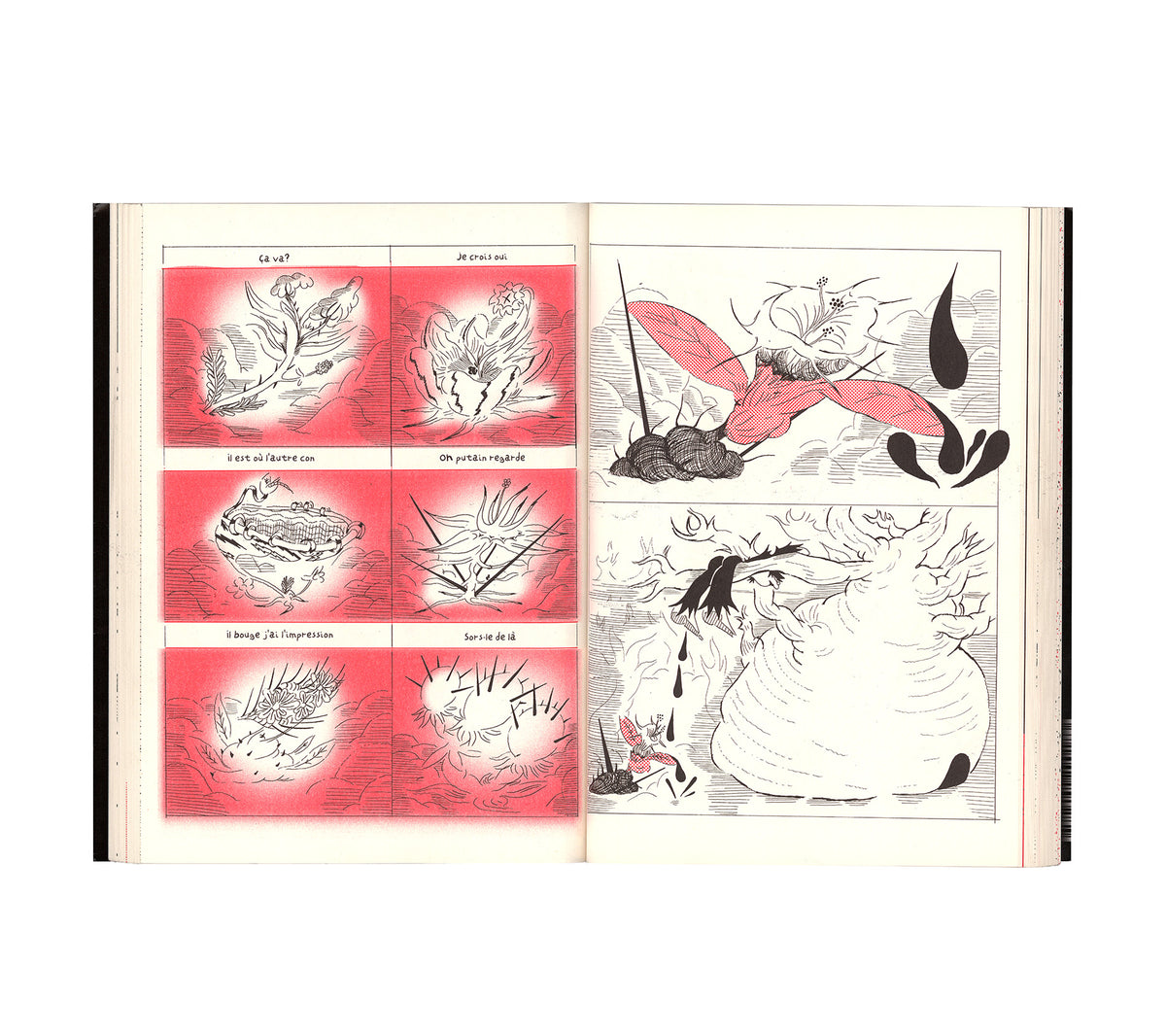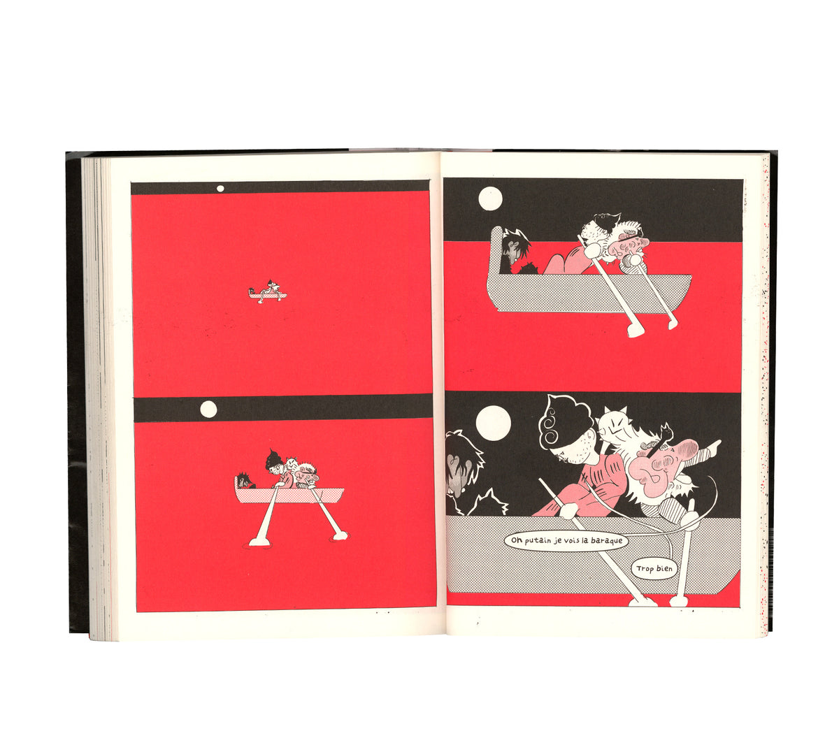 In red and black, sharp and powerful, the author develops a rich and liberating graphic vocabulary, alternating with halftones, lines, masses, and appearances of striking colors. The interactions are felt and spontaneous, just like the unfolding of the story which has undergone no modifications to preserve its freshness, transparency, and vivacity. Henri Crabières establishes himself as a true narrator-drawer, writing faces, words, movements, and settings with the same line.