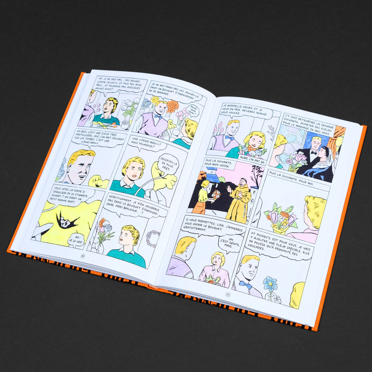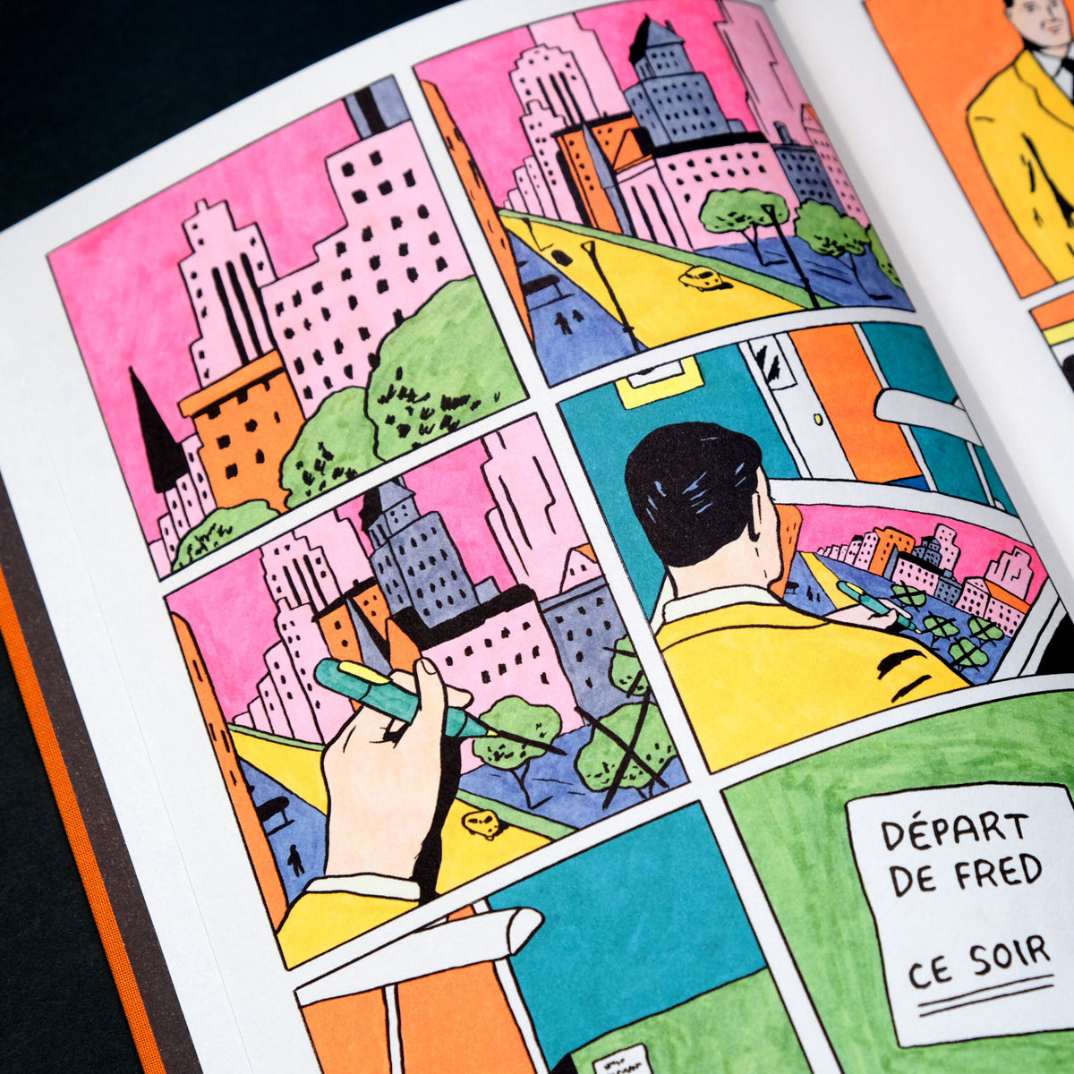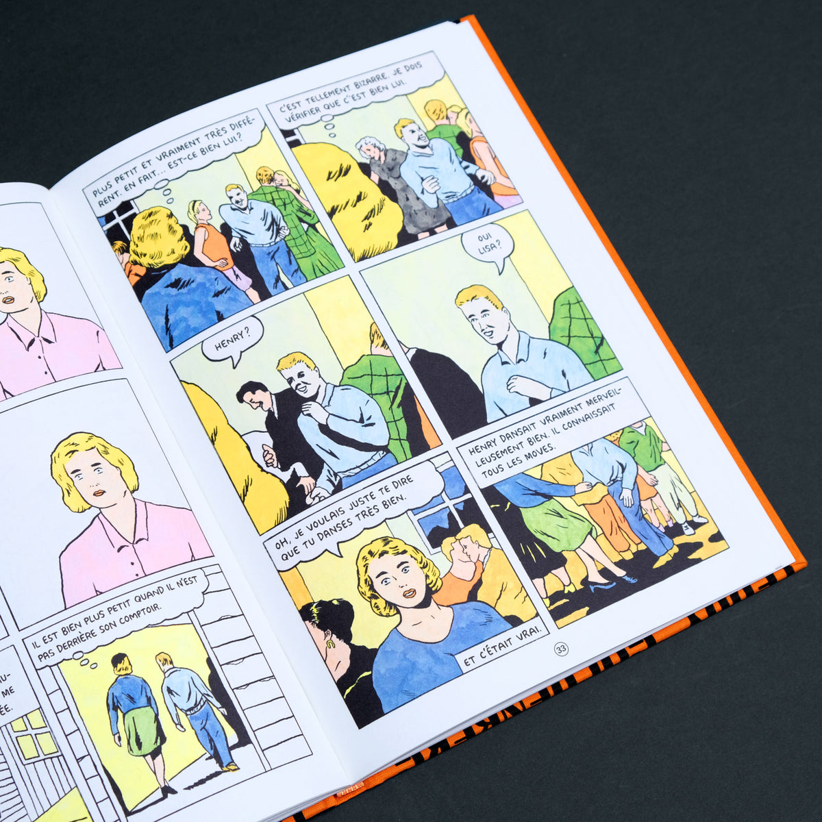The author also explores this through his drawing and framing, offering a vibrant staging with a demanding and rigid grid, and a mechanical reading rhythm. The ideas that disrupt this strict framework are unexpected, always surprising, and brilliantly original.
